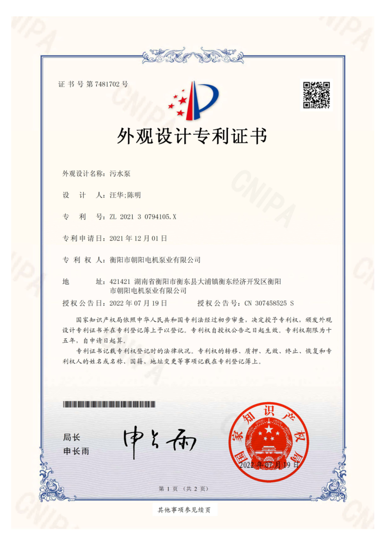 朝陽新一代WQ型污水污物潛水電泵-普通款不僅在外觀上有巨大的突破——采用了流暢的外殼和一體化自帶攔污網(wǎng)格設(shè)計,并申請獲得了污水泵外觀設(shè)計專利。而且,在功率提升的同時,價格同比下降約20%以上。